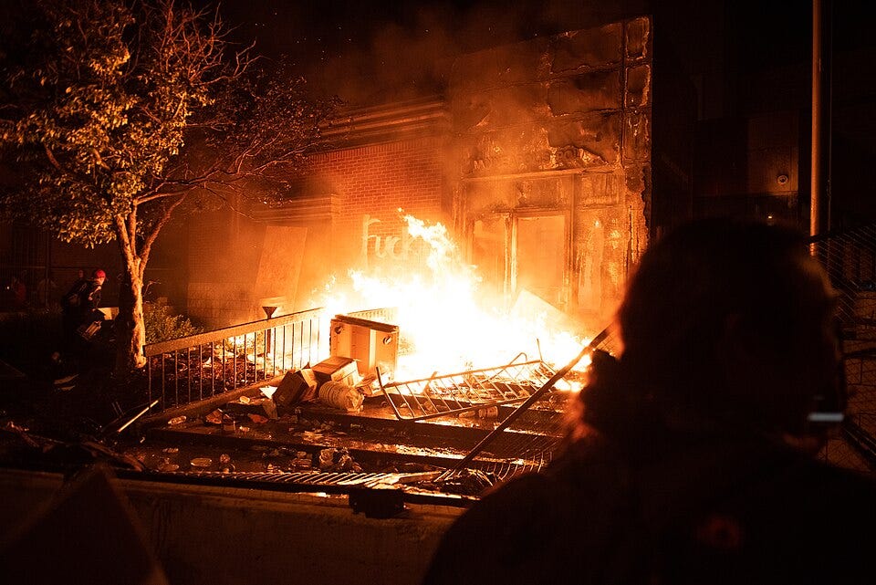 5/28/20: Minneapolis police station burned down. The majority of Americans said that this was justified.