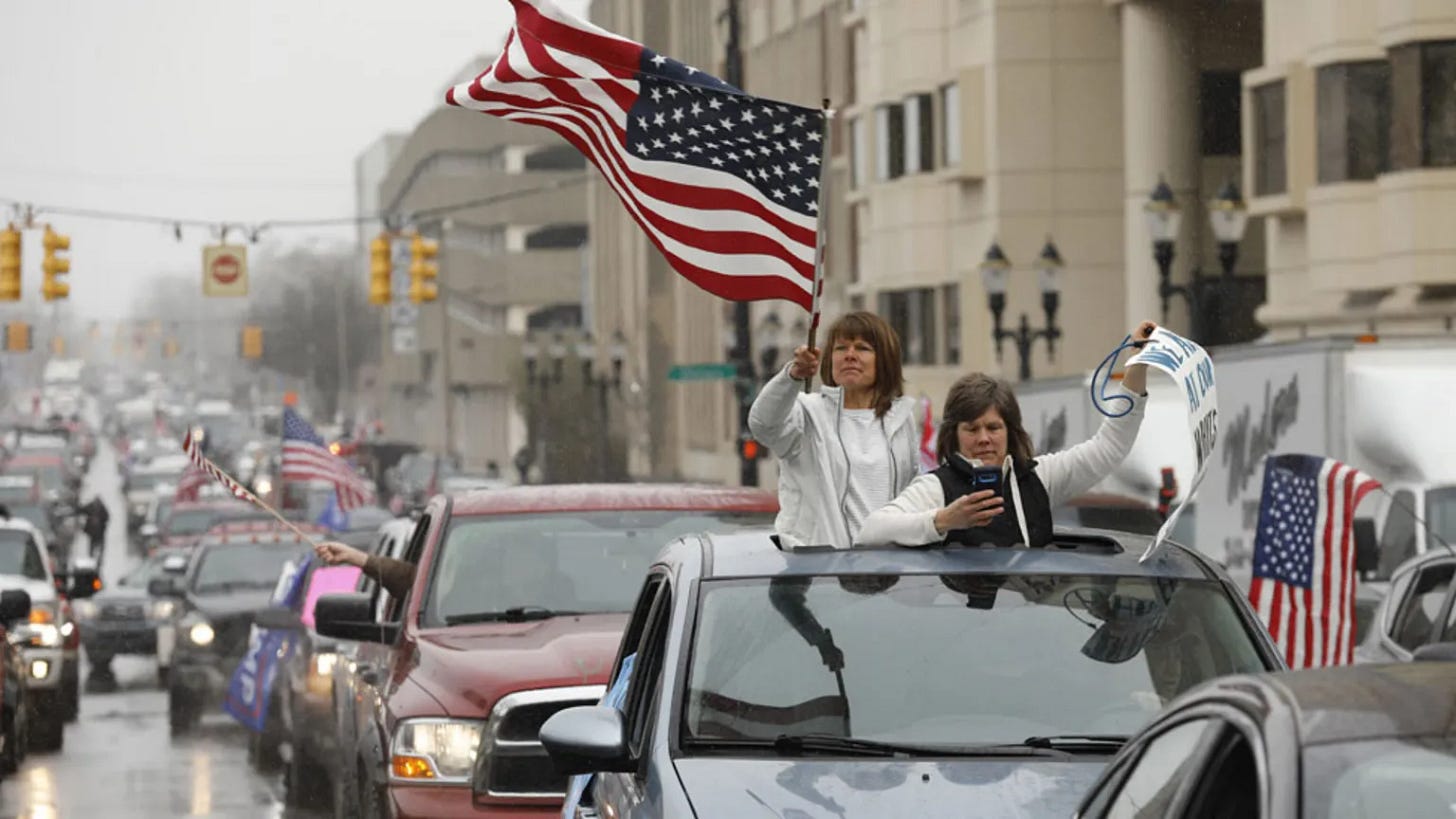 4/19/20: Anti lockdown protests. Many people protested against COVID lockdowns, Trump Tweeted to “liberate” various states.