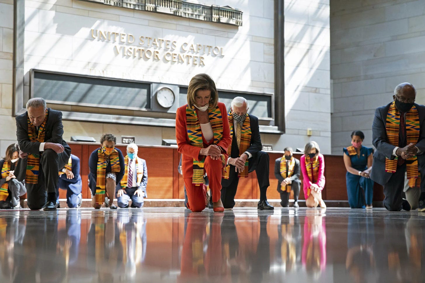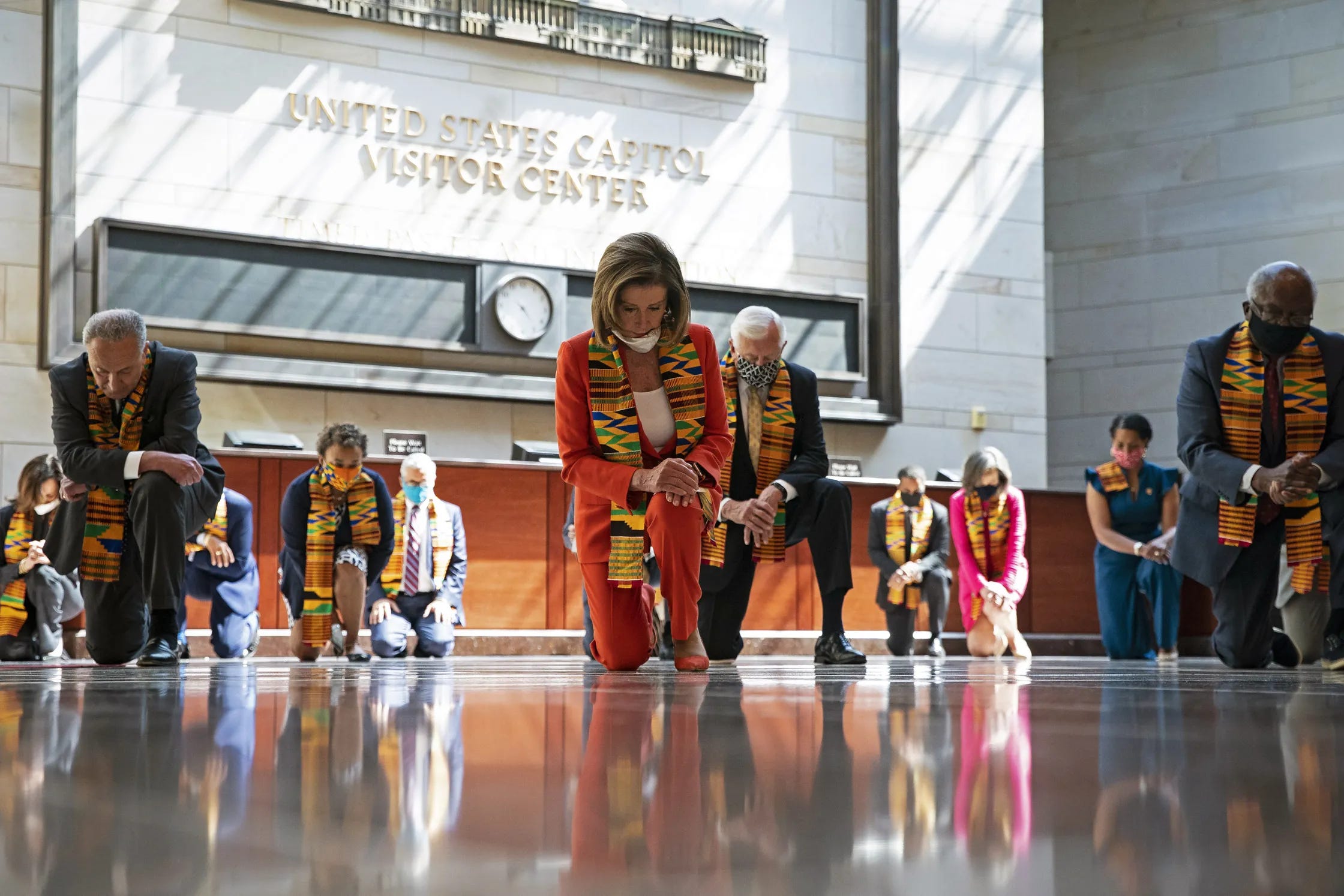 6/8/20: Democrats kneel. On this day, top Democrats put on Kente stolls and knelt for 8 minutes and 46 seconds to honor George Floyd. To many, this image perfectly symbolized the moment.