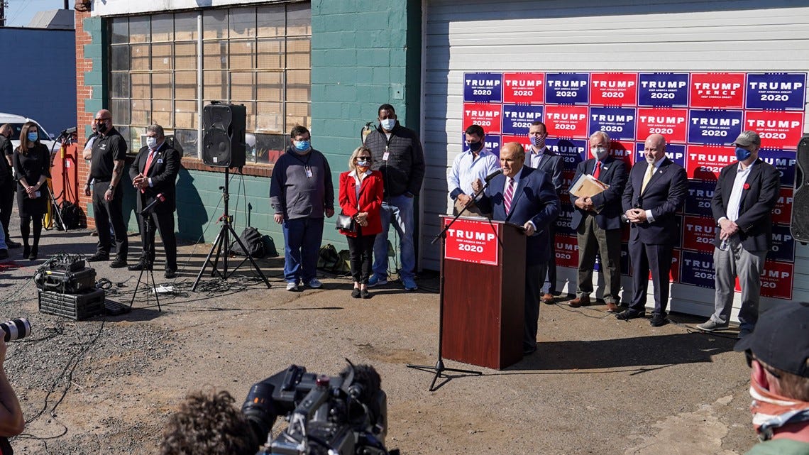 11/7/20: Four Season Total Landscaping press conference. Rudy Giuliani and Trump hold a press conference at the Four Seasons Total Landscaping in Philadelphia about election fraud. It was widely speculated that this was supposed to be held at the Philadelphia Four Seasons. This clown show would set the tone for the Trump campaigns unsuccessful campaign to reverse the result of the election.